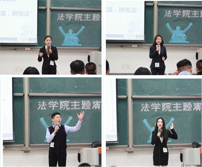 由定题演讲和即兴演讲两部分组成的复赛环节,是对参赛选手理论素养、语言表达和临场应变能力的综合考验。选手们依次登台亮相,深怀饱满热情诠释了新时代背景下,宪法作为公民权利保障书所具备的深刻内涵。十三位同学结合历史事件、时事热点、舆论关切和亲身经历阐述了对法治精神和时代发展脉络的思考,其中凝聚了对大山深处适龄儿童享有平等受教育权利的呼吁、外来务工人员在城市中坎坷命运的反思、人民群众对法律信仰的审视、社会公众对道德困境的诘问以及国家对人格尊严的珍视。不可否认的是,尽管在时代的进步和法治文明进程中总是充满了荆棘与曲折,但历史客观规律也同样昭示着中国特色社会主义法治道路必将迎来更为辉煌的明天。