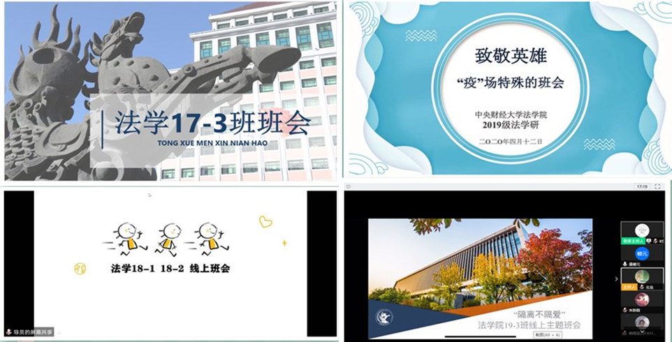 随着全国疫情防控进入常态化新阶段,对我院学生思政工作的开展也提出了新要求。为贯彻教育部“停课不停学”指示精神,配合落实我校各方面工作安排,我院着力创新疫情防控期间工作模式,采取多种举措,扎实做好对学生的思想引领工作。自学期初以来,在学院党委副书记徐颖研究员精心组织下,举行了“悦读——如何愉快地打开一本书”“如何提前为毕业论文做准备”“法学学习中的案例分析”为主题的线上新生引航工程系列讲座,取得了良好效果。在此基础上,我院班主任、辅导员老师又在4月份组织二十余个班级通过单独或联合的方式召开了十余场线上“云”班会,与同学们就近期学习、生活、未来规划等问题进行交流。