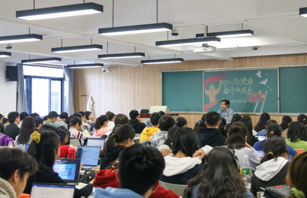 2020年10月28日14点30分,我院在学院南路校区主教学楼319教室举办2020级本科生新生引航工程讲座,主题为“初心与使命·奋斗与成长”。本次讲座由中央财经大学党委副书记梁勇主讲,2020级全体本科新生参加。