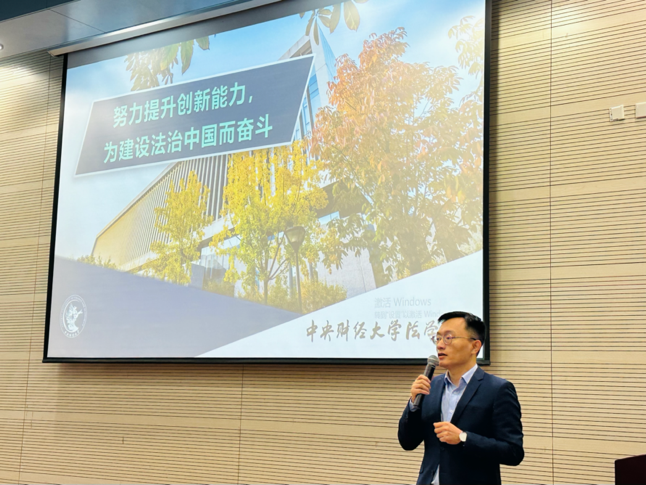 刘权副院长以“努力提高创新能力,为建设法治中国而奋斗”为主题,向同学们讲述法学院人才培养目标和培养方式,并针对研究生阶段学习方法给出相关建议。