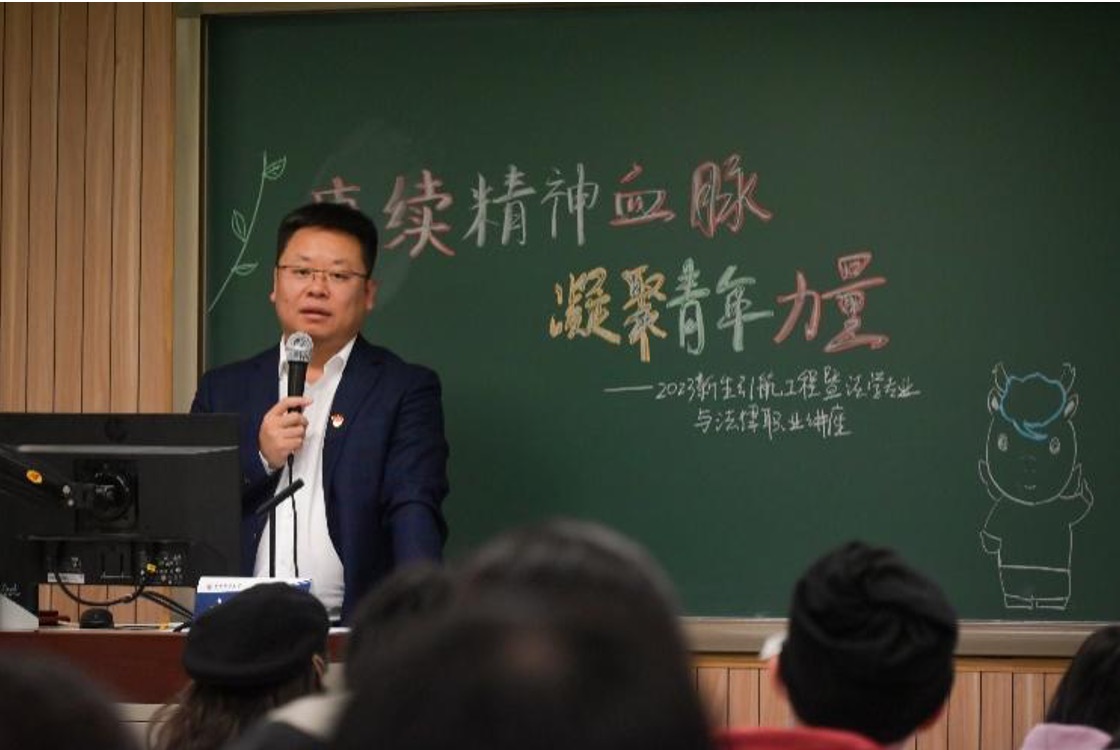 2023年11月10日下午,我院于中央财经大学学院南路校区主教117教室举办新生引航工程系列讲座,本次讲座主题为“赓续精神血脉,凝聚青年力量”。本次讲座由中央财经大学团委书记高杨主讲,2023级本科生董雪一主持,2023级辅导员郭亦岚老师及2023级全体本科生参加。