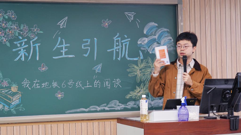 2024年11月8日上午8点20分,我院于中央财经大学学院南路校区主教103举办新生引航工程系列讲座,本次讲座主题为“我在地铁6号线上的阅读”,由我院副教授、硕士生导师周游老师主讲,2024级本科生辅导员孙崔巍老师与法学院2024级全体本科生参与。