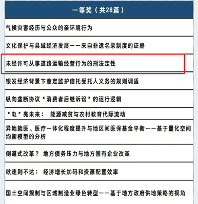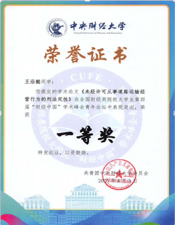 在“完善中国特色社会主义法治体系”分论坛中,经过专家匿名评审及现场答辩环节,由我院简爱副教授指导的2023级刑法学硕士生王沿懿提交的学术论文《未经许可从事道路运输经营行为的刑法定性》荣获一等奖。该论文针对当前实践中对无证从事道路运输服务行为多以非法经营罪规制可能存在的定性偏差与量刑失衡问题,剖析了非法经营罪的保护法益及行政犯违法性判断应坚守的标准,旨在摆脱“缺失行政许可即构成非法经营罪”的逻辑误区,为科学、合理界定非法经营罪的适用范围提供了参考。