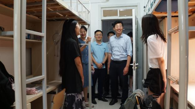 迎新现场工作结束后,副校长栗峥、法学院党委书记于文豪、党委副书记徐颖、副院长刘权、组织员陈诚等一同走访了学生宿舍,热情地关怀新生,传递了深切的关爱和慰问。