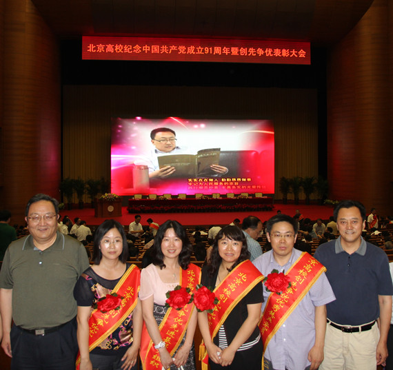 下午,北京高校庆祝中国共产党成立91周年暨创先争优表彰大会在清华大学隆重召开。大会对北京高校2010——2012年开展创先争优活动进行了总结交流,100个基层党组织和100名共产党员受到表彰。市委常委、教育工委书记赵凤桐出席大会并讲话,副市长洪峰主持会议。我校党委书记胡树祥、副书记倪海东,组织部、宣传部负责人、基层党组织负责人、校级先进基层党组织、优秀共产党员代表45人参加了大会。我院陈华彬教授荣获北京高校2010-2012年创先争优 “优秀共产党员”荣誉称号。