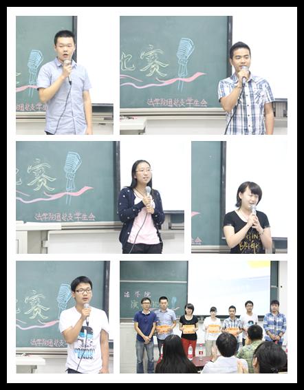 9月8日晚7点,法学院在沙河校区主教106教室举行了新生演讲比赛,演讲主题是“我的中财梦”。本次演讲比赛由法学院团总支学生会副主席田林艳同学主持,院团总支书记李杰老师、院团总支学生会主席团与各部部长出席了本次演讲比赛,院辩论队员党弘毅、许霏、马婧等同学也作为评委出席了本次比赛,2013级的11位同学参加了本次演讲比赛。