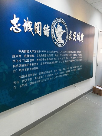 最后,讲解员为大家讲解了我校的校徽和校训。以“龙马担乾坤”为核心主体的校徽,寓意着中国第一所财经院校在时代的发展中充满朝气与活力。“忠诚、团结、求实、创新”的校训则是在中央财政金融学院建院四十周年时由时任财政部部长王丙乾题写,激励着一代又一代的中财人奋发图强。