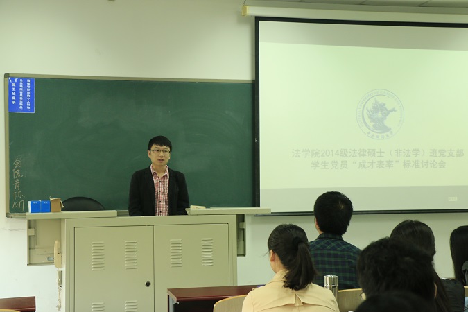 2014年10月20日上午10点,2014级法律硕士(非法学)班党支部会议暨“成才标准”讨论会在学院7号楼217教室召开,支部党员和入党积极分子参加会议,会议由支书朱曦主持。