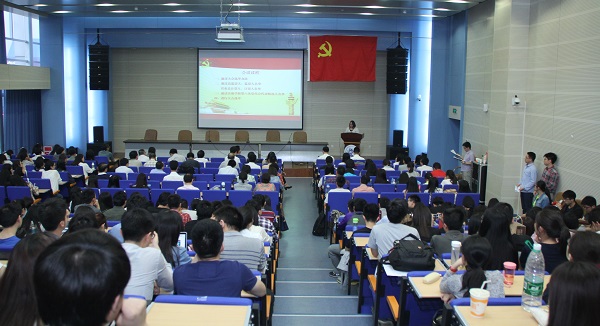 晚七时整,党员大会在学院南路校区学术会堂402报告厅隆重召开。来自教工党支部和学生党支部的243名正式党员参加了大会,部分预备党员列席了会议。此次大会的主要任务是选举产生我院出席学校第六次党代会的代表。大会由学院党总支书记李岩同志主持。