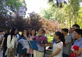 在公园里,我们碰到几个老大爷,正在那伴随着激昂的曲调引吭高歌。他们是一个自发的音乐歌咏爱好者团体,每天都会在这里聚会、联系。在经过征询意见后,得知我们在进行党组织活动时,他们欣然同意我们加入他们队伍一起唱歌。“那是一条神奇的天路....”“心苍茫,雁何往,心中是北方家乡.....”大家合唱一首歌,歌声嘹亮,气势如虹。周围的路人也被吸引过来,加入到我们的合唱中来,歌声拉近了我们的距离。我们唱完了一首又来一首,激扬的歌声在天空回荡,歌声在此荡漾,欢乐也在此传递。