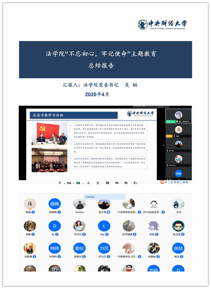 4月17日上午,学院党委召开“不忘初心、牢记使命”主题教育总结会。由于疫情原因,本次总结会采用了线上视频会议的形式。学校“不忘初心、牢记使命”主题教育第三联络指导组组长贺小海出席会议并讲话,指导组成员谭嗣钰也到会指导。院党委书记吴韬做主题教育总结讲话。