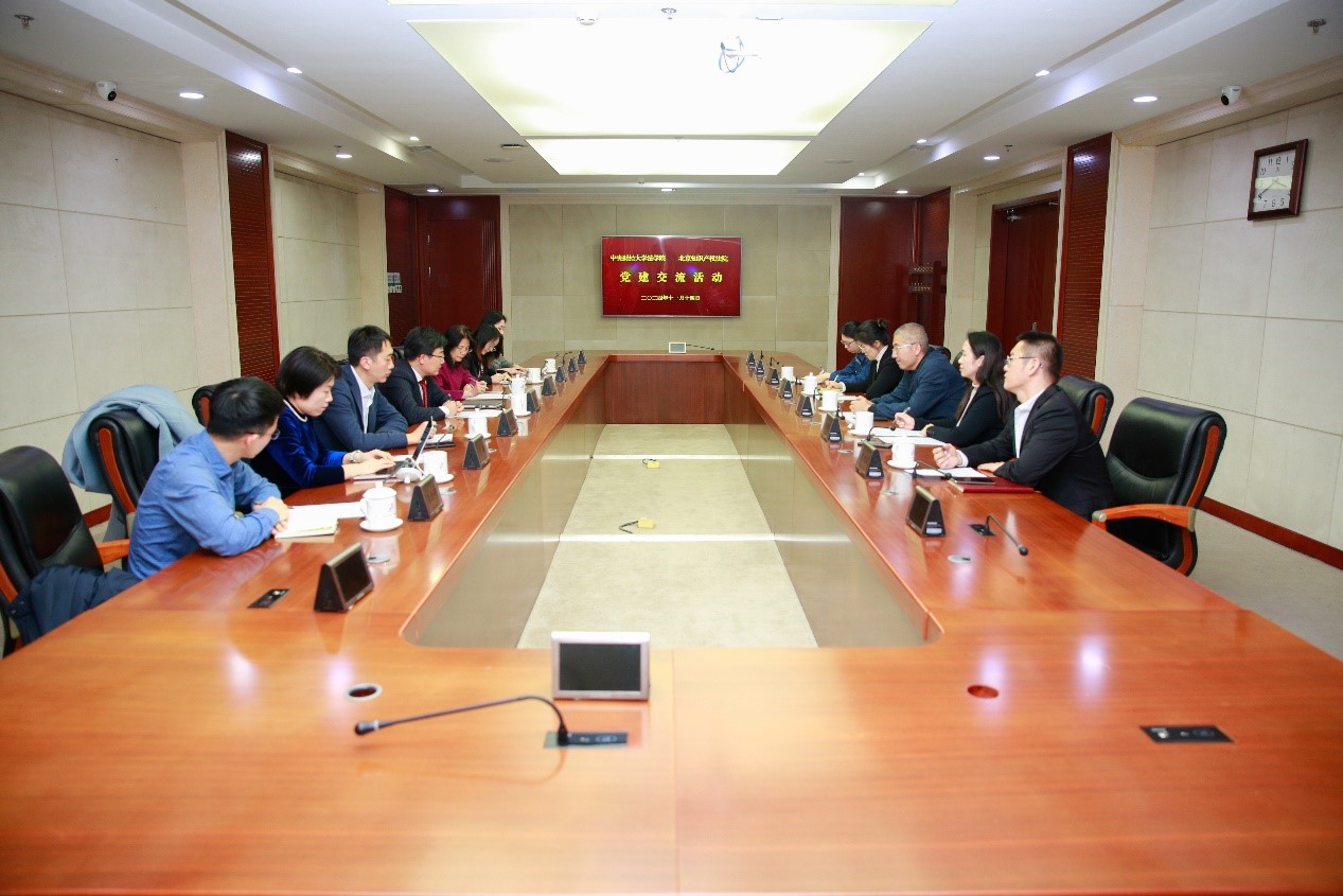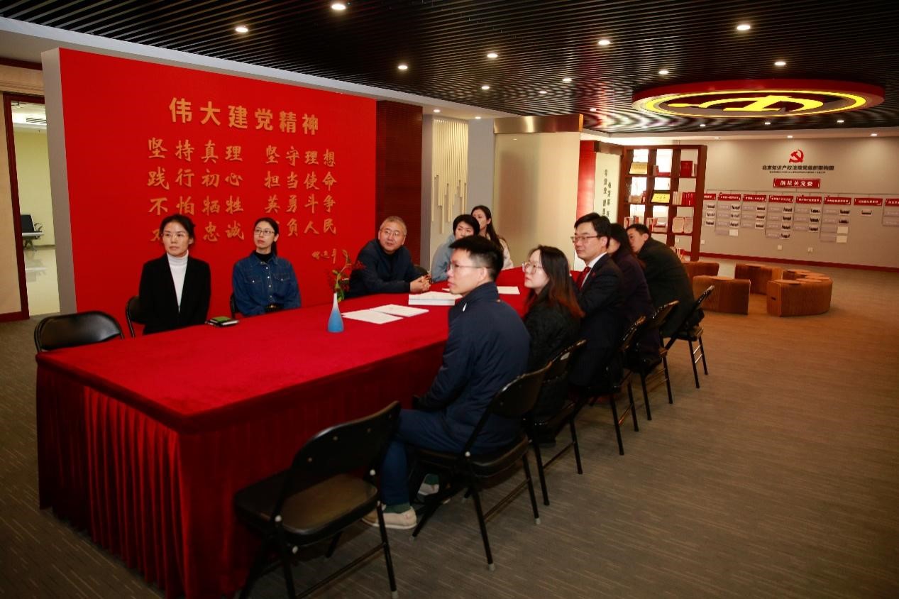 林剑锋书记介绍了中央财经大学法学院的培养特色、优势基础与党建资源,回顾了双方合作历程,希望通过继续加强与北京知识产权法院的合作,助力推动双方党建与业务融合发展,共同推进涉外法治人才培养。刘嘉书记介绍了北京知识产权法院的情况,强调了知识产权审判的专业性和涉外性,以及双方在涉外法治人才培养中的诸多契合点。徐颖副书记谈到本次座谈也是学院“访企拓岗”的一项重要活动,希望未来可以建立更加良好的实习生遴选和输送机制,助力法学院毕业生高质量就业。会议双方确认了中央财经大学法学院第五教工党支部与北京知产法院审判第四庭党支部结对共建的关系,并就后续的党建活动开展、涉外法治人才培养、实习实践与志愿活动开展,以及资源互动共享展开讨论,形成了共识和后续工作的计划。