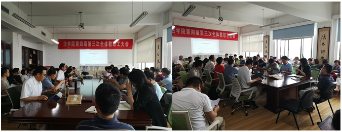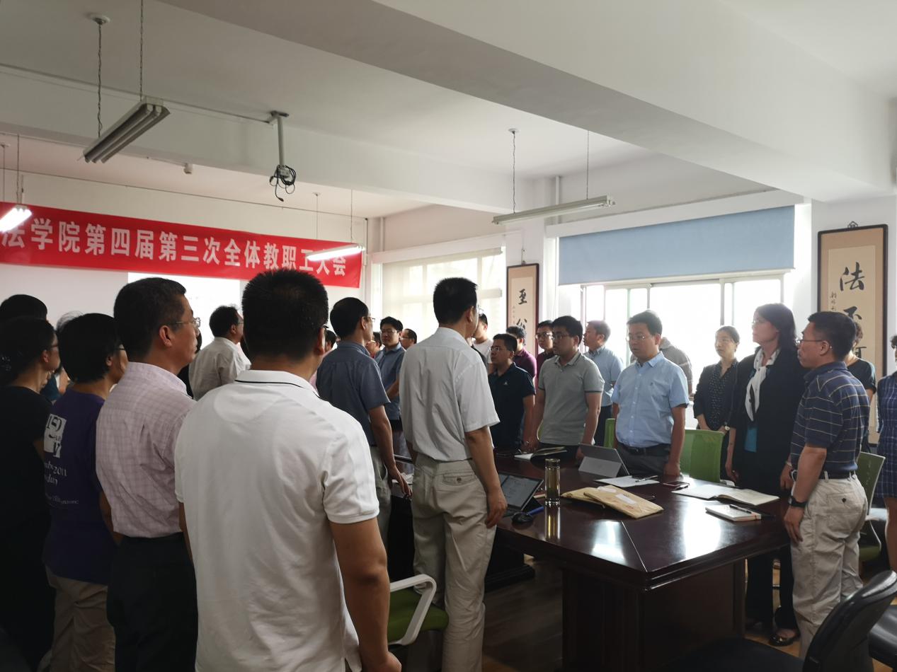 根据校发[2018]32号文件《中央财经大学二级机构奖励性绩效发放管理办法(试行)》的要求,2019年6月5日,法学院召开第四届第三次全体教职工大会,讨论通过《法学院奖励性绩效发放办法》。大会应到74人,实际到会58人,符合规定要求。院党委副书记、分工会主席徐颖主持大会。大会首先奏唱国歌。徐颖副书记就本次大会的主要任务作了简要说明。