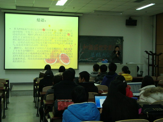 11月25日,法学院团总支在沙河校区主教209举办了2011年度主题教育总结会,会上,10级、11级各支部代表对10月开展的“学党史、知党情、跟党走”活动的成果进行了展示。