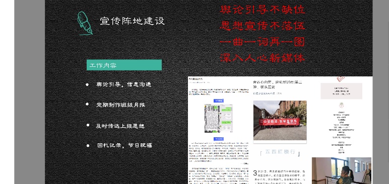 法学19-2支部的宣传阵地主要是依托线上微信公众号“财法二班”进行建设。在班助和“芮+”导师的引领下,我支部公众号于2019年9月19日创设,公众号名字由我支部全体成员群策群力投票选出,主要运营成员为支部宣传委员杨易明同学。该公众号宣传内容包括三部分:其一,团支部的思想和组织建设,主要内容为团日活动、支部团支委评选、“三会两课一制”和相关“芮+”工作的开展情况;其二,团支部生活建设,主要内容为好书推荐、心灵驿站和支部团体活动剪影;其三,节日或生日祝福。自2019年9月21日发布第一篇推送“法学院19-2班|班主任见面会暨班干团委选举”至今,我支部公众号在思想和组织建设方面发文11篇、生活建设发文10篇、节日或生日祝福发文17篇,共计34篇。推送内容丰富、互动形式多样,其中多篇优质推送得到了支部团员们的一致好评。我们的大学生活通过支部公众号得到了记录,我们的心声凭借推送发文得到了传播。未来,我支部还将继续努力,为团员发声,为青春添彩。