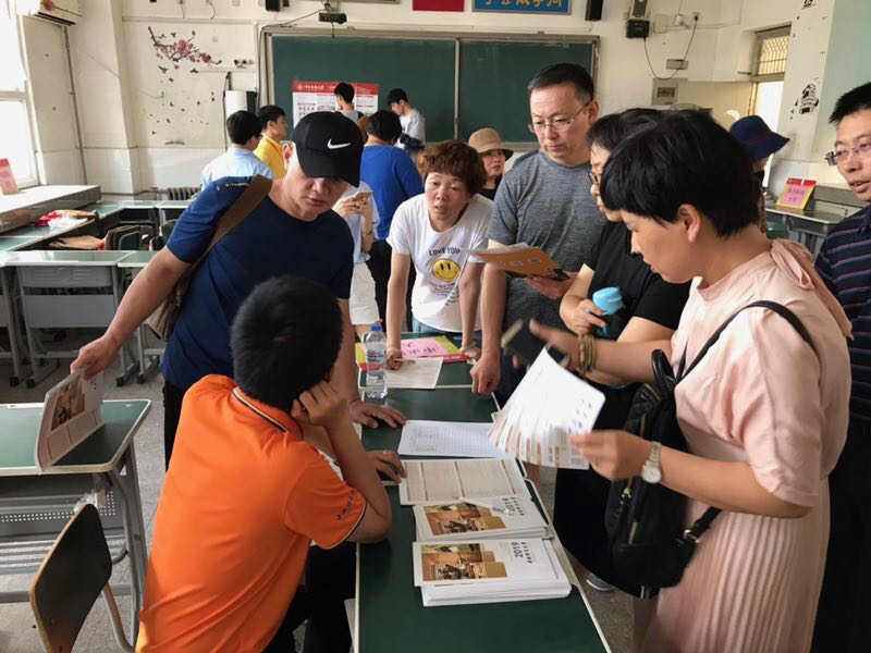 在唐山一中这所百年老校的咨询现场,张琪副教授和吴晓丹副教授未雨绸缪,提前布置咨询展位,并系统梳理了家长及考生的高频问题,为咨询工作的顺利开展奠定了良好的基础。张琪副教授的同学也亲赴车站接送并帮忙布置咨询现场。