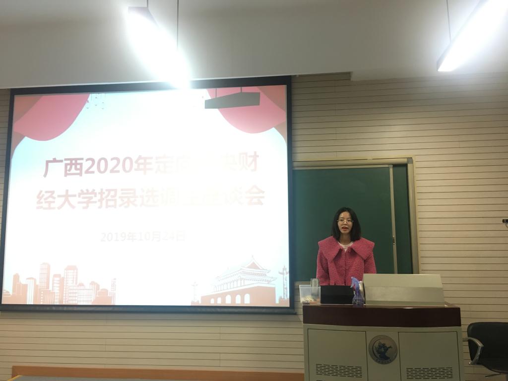 2019年10月24日,广西壮族自治区2020年定向中央财经大学选调生政策宣讲联络员、我院2019届毕业生李佳,于主教110教室为我院学子们带来了一场选调生政策解读暨备考经验专场分享会。