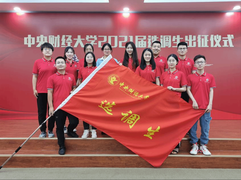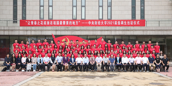 2021年6月25日下午,中央财经大学2021届选调生出征仪式在学院南路校区主教114举行。校党委书记何秀超,副校长朱凌云,2014届选调生、四川省广汉市副市长魏仁科,学校相关部门负责人,各教学单位学生工作负责人以及2021届选调生出席仪式。