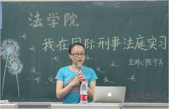 5月21日晚7点,我院在沙河主教305教室举办了名为“我在国际刑事法庭实习”的讲座。此次讲座的主讲人是我院2008级毕业生陈宇兵,在此次讲座中她向我们全方位展示了自己在莱顿大学学习国际公法以及前南斯拉夫国际刑事法庭实习六个月的心路历程。我院党总支书记李岩、院长助理李伟出席了本次讲座。