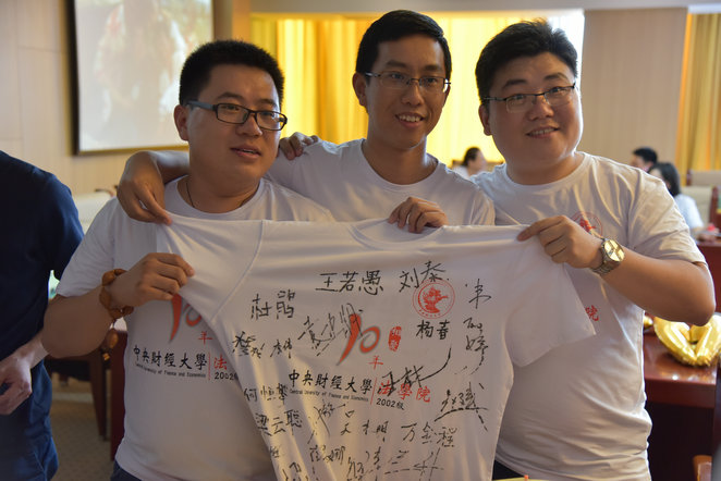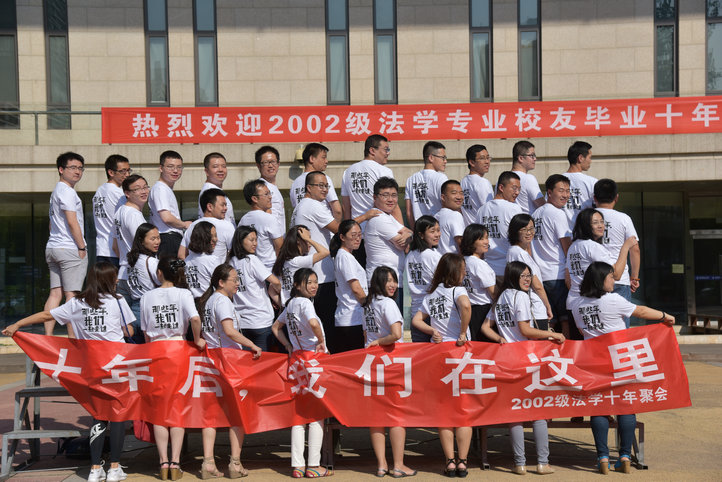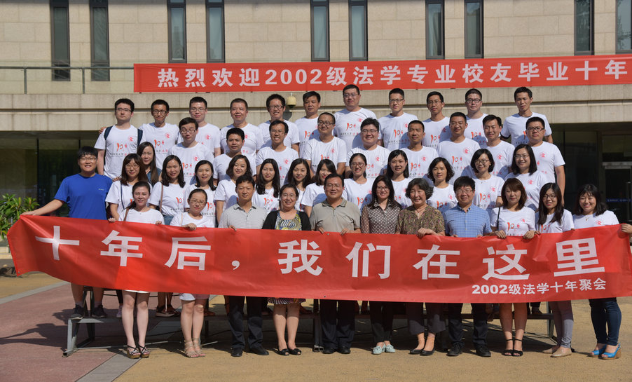2016年9月3日下午,我院2002级校友毕业十周年返校座谈会在学院南路校区学术会堂604会议室举行。院长尹飞、党委副书记徐颖、副院长李伟、院工会主席曹晓燕、院长助理于文豪、原2002级本科生辅导员高晓萍,以及法学院校友会会长、1995级校友张鲲出席座谈会。2002级法学本科1班、2班共40余名校友重返母校,参加座谈会。