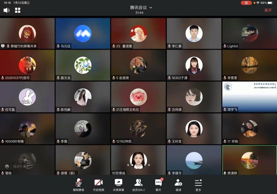 2023年7月12日19时,我院举办中央财经大学2023年卓越财经法治人才夏令营校友沙龙,本次会议主题为中央财经大学法学院优秀校友经验分享。会议由法学院校友会副秘书长、国瑞金融资产管理有限公司副总经理、2009级法律硕士(非法学)校友李建月主持,法学院党委副书记徐颖研究员、法学院副院长刘权教授以及本次中央财经大学卓越财经法治人才夏令营营员参加会议。