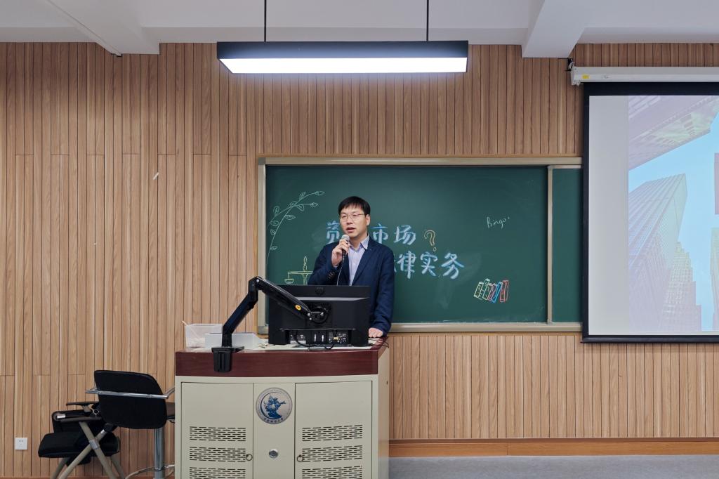 讲座开始,晏国哲律师从“资本市场”这一概念出发,引导同学们对本次讲座主题进行深入思考。他结合资本市场定义,以我国融资方式、金融机构种类等内容为补充,强调了资本市场在国内与国际经济发展中的重要性和发展前景,鼓励同学们积极参与相关企业或机构的实习,积累实务经验。