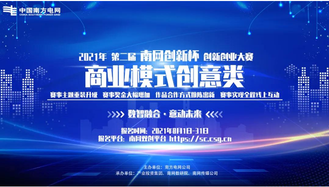 近日,由南方电网公司主办的2021年第二届“南网创新杯”创新创业大赛全面开启。本次大赛围绕数字电网推动构建新型电力系统,以“数智融合 意动未来”为主题,旨在进一步搭建开放创新平台,发掘优秀创新人才,营造全员创新氛围,加快构建以新能源为主体的新型电力系统。