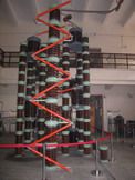 合成振荡回路大厅建于二十世纪八十年代末,面积约300平方米。目前,合成试验振荡回路容量为2.27MJ,最大输出电流为500kA,最高电压35kV,可对35kV及以下电压等级的开关进行开断容量试验,这是目前国内高校最大的合成试验振荡回路。