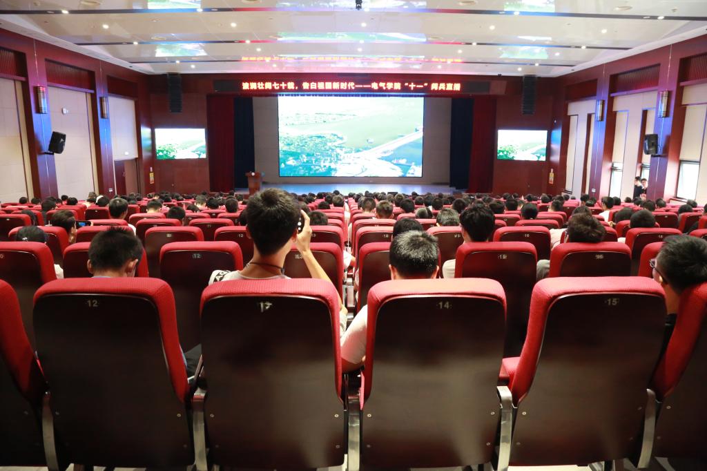 电气学院积极开展中华人民共和国成立70周年庆祝活动,特举办“波澜壮阔七十载,告白祖国新时代”主题教育和宣传活动,在“十一”国庆节到来之际,组织学院师生共同观看“十一”阅兵直播活动。