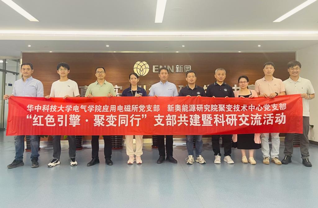 2025年6月11日,应用电磁工程研究所党支部书记李冬、所长陈德智及党员代表一行5人赴位于河北省廊坊市的新奥集团股份有限公司,与新奥能源研究院聚变技术中心党支部开展“红色引擎·聚变同行”支部共建暨科研交流活动,交流党建工作经验体会,探讨科研合作机会。新奥能源研究院聚变技术中心党支部书记杨圆明、加热技术能力群召集人韩磊及党支部党员参加交流。