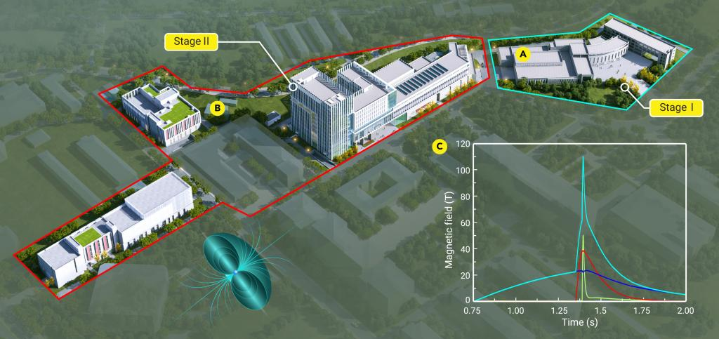近年来,彭涛教授团队通过在脉冲磁体设计理论及工艺上的创新突破,克服了国产导线强度不足的劣势,研制了系列高参数脉冲磁体,确立了我国在国际强磁场领域的领先地位,在2025年初更是研制出新型高场用户磁体投入磁特性实验站使用,一举将强磁场中心常规用户磁体磁场强度从60T跨越式提升至70T,达到国际领先水平;彭涛教授还带领团队在100-300T单匝线圈超强磁场系统方面开展理论分析方面,建立了单匝线圈在大电流放电时的等离子体流体动力学模型,为超强单匝线圈的研制奠定了理论基础。