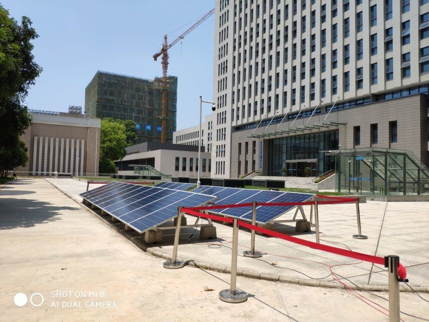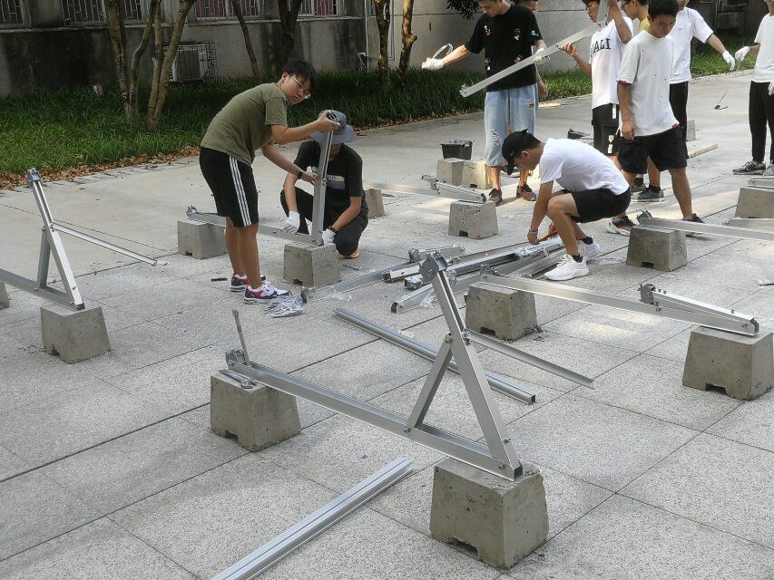 8月12日至13日,张蓉老师和全体营员在电气大楼南广场搭建了实际光伏发电站。搭建光伏发电站主要包含太阳能板搭建、逆变器安装和设备连线这三个环节。顶着炽热的太阳,全体营员有条不紊地配合着,很快就把太阳能板搭建好了。各设备间的接线也需要同学们自己制作,同学们在实践现场,一起安装各式各样的接插件,克服重重困难。所有的辛苦都是值得的,看着电表箱显示并网成功,每位同学脸上露出了开心的笑容。