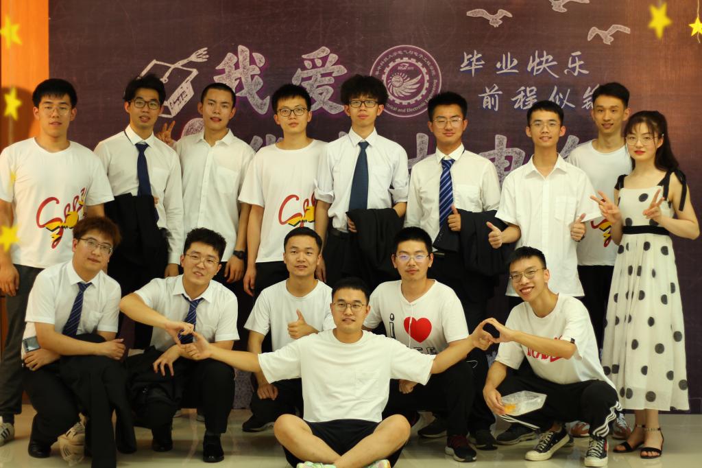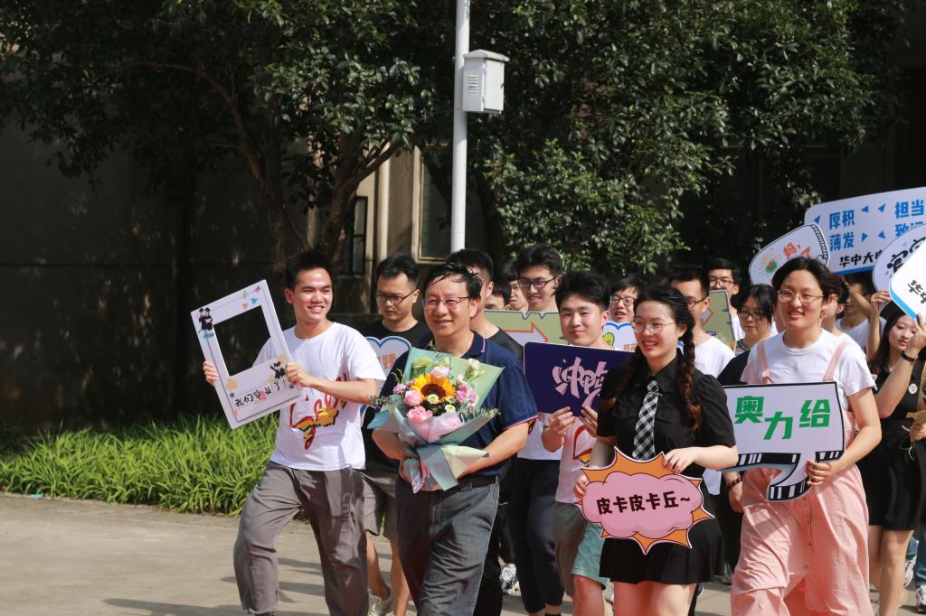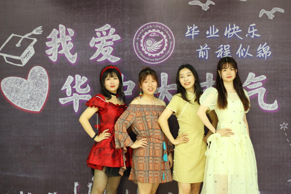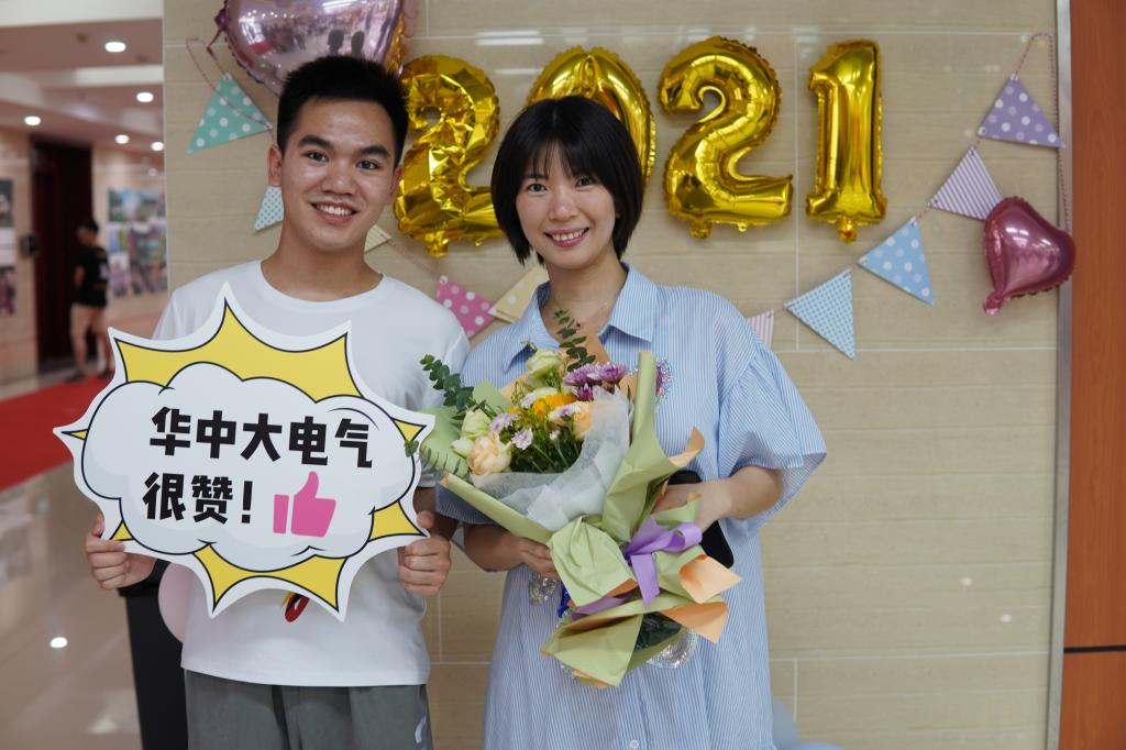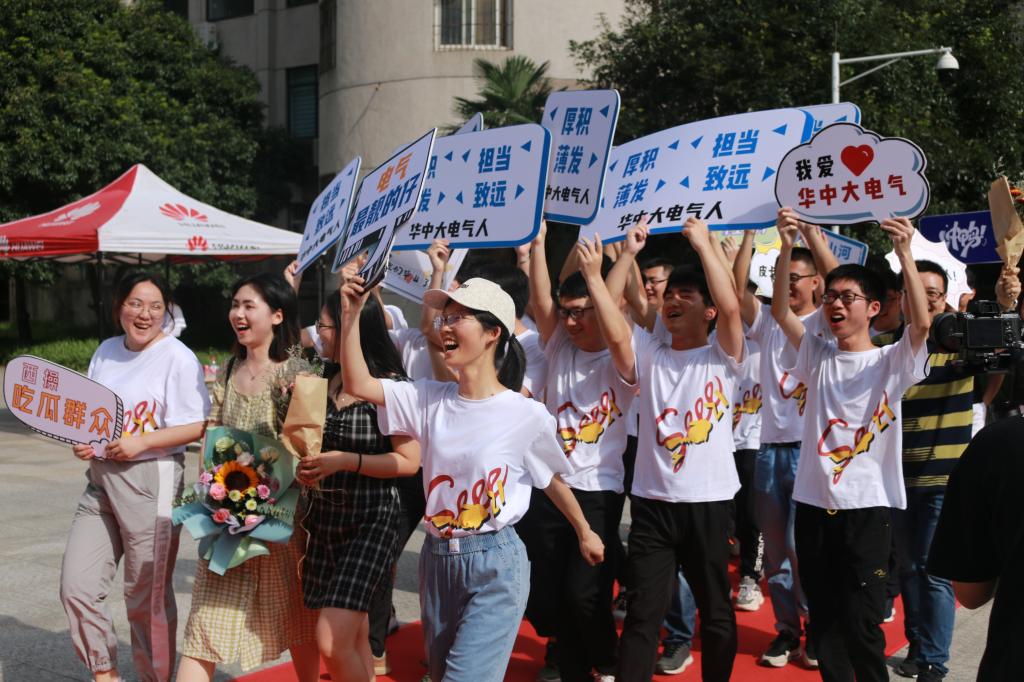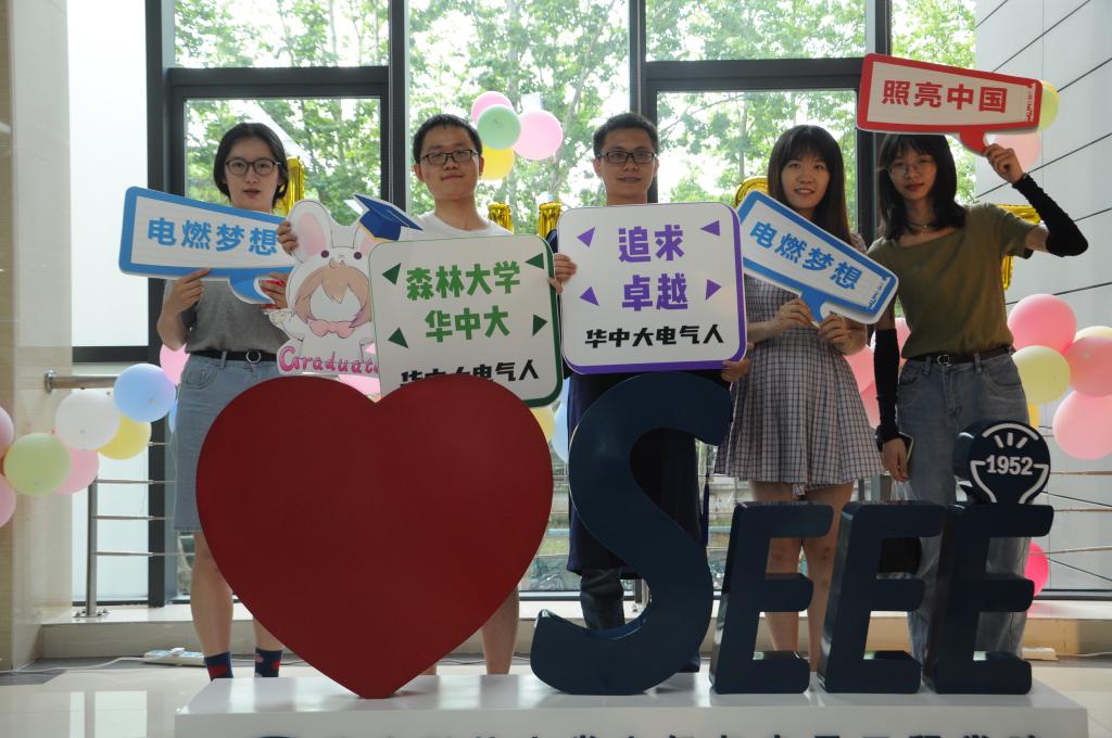 西边的背景墙上,“我爱华中大电气”几个艺术字,吸引了众多同学前来合影留念。