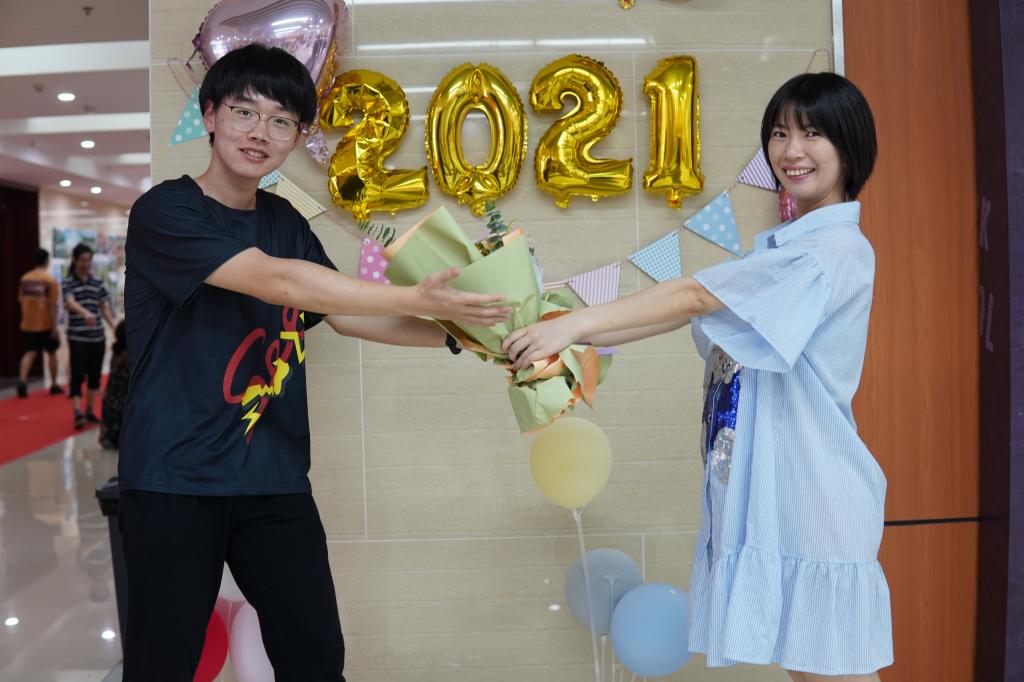 大厅中间摆放着学院定制的主题可乐,四周及天花板上,挂着大小各异的气球,烘托着热烈的气氛。现场欢声笑语不时爆发出来,大厅里洋溢着青春气息。