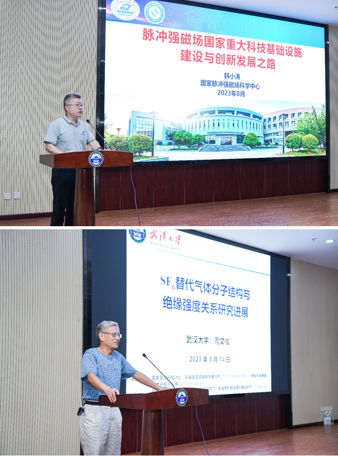 在随后进行的等离子体学科交叉论坛邀请了华中科技大学国家脉冲强磁场科学中心韩小涛教授、武汉大学周文俊教授和北京大学陈江教授,围绕先进科研平台建设、行业科技创新和创新课程改革主题进行专题报告。韩小涛教授首先介绍了“脉冲强磁场国家重大科技基础设施建设与创新发展之路”,周文俊教授报告了“SF6替代气体的分子构效关系研究进展”,陈江教授介绍了“通识教育中的创新课的建设感想”。学科交叉论坛为挖掘等离子体科学技术与其他学科的交汇点,促进离子体学科发展、成果转化和人才培养等提供新视野和新思路。