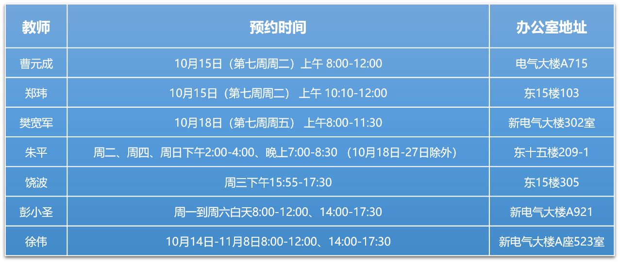 为了给师生间的沟通创造新的平台,帮助学生进一步了解学院、了解电气学科,学院在此前一共举行了两期“师生面对面”教师开放日活动。根据对参与活动的老师和同学们的调查,同学们对老师的解答满意度达100%,认为参加活动的收获非常大,同时活动也得到了老师们的一致认可。现在,电气学院第三期“师生面对面”教师开放日活动震撼启动啦。本周将会开展第三期第一档活动,一共有7名老师参加,欢迎同学们报名参加呀~