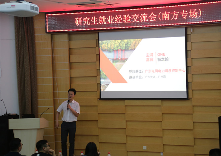 签约广州市供电局的刘恒玮分享了他的经验。他表示先做好选择,综合考虑城市、收入、行业等等根据个人情况做好自己就业规划。并强调了要正确认识自己,明确自己的核心竞争力,再做准备工作。