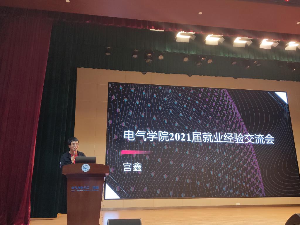 2021年5月28日晚,电气学院第四期就业经验交流会北方及企业专场在电气大楼B205多功能厅举办。2021届优秀毕业生代表张成涛、宫鑫、艾经纬、王启元、高加楼结合自身经历向到场同学分享了就业流程和求职经验,会议由就业服务中心的车俊儒主持。