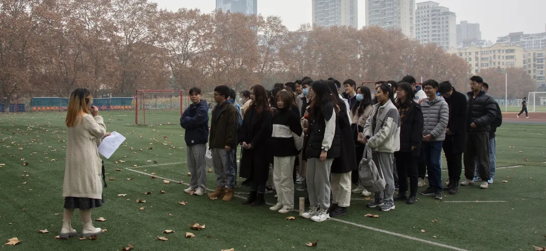 比赛正式开始之前,两班团支书按照各班人数将同学们分成了5组,每组大概10人。在主持人龙情同学和现场工作人员的组织下,各小组围成一个圈,展开了一场别开生面的自我介绍,并为自己所在的小组起好了队名。此次“传承红色基因,践行初心使命”特色团日活动趣味运动会一共有四项游戏:123木头人、数7游戏、背对背奔跑、党史知识竞答,游戏采用积分制确定最终获胜队伍。
