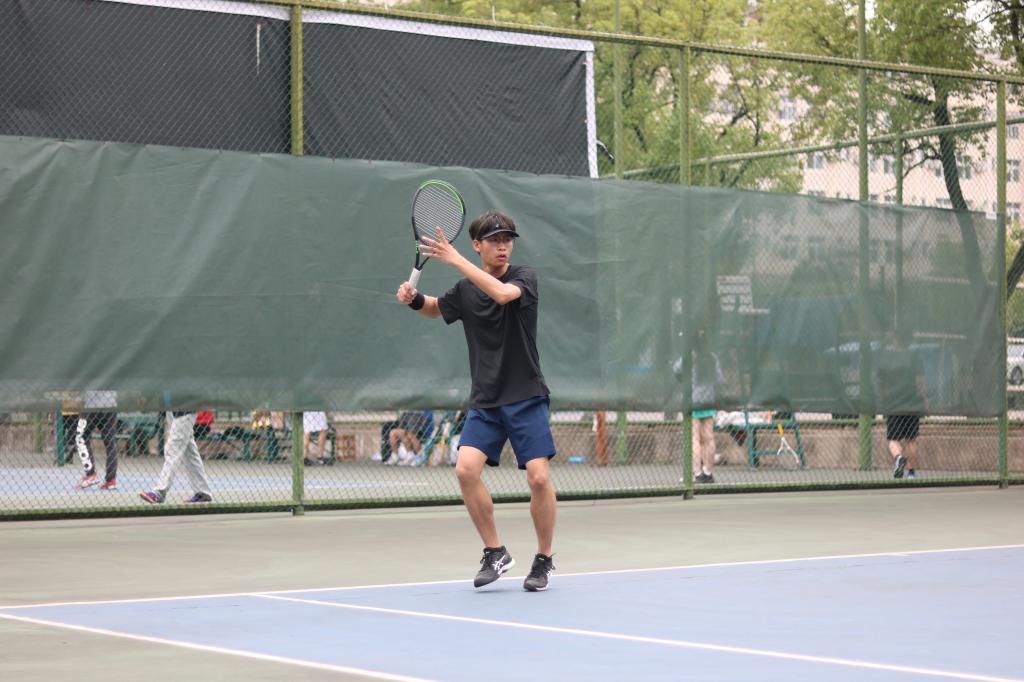 面对对手稳健的风格,我方男单选手陈俊杰准备采取稳扎稳打,主动进攻的比赛策略,保证球质的同时,充分调动对手。开局双方互相试探,我方选手在底线相持上并不占优势,比分焦灼。随后陈俊杰果断改变战术,接发球大胆果敢,积极压反打正并配以精妙的小球;发球局凭借高质量的发挥与发球上网战术,为电气学院带来了男单比赛精彩的胜利。