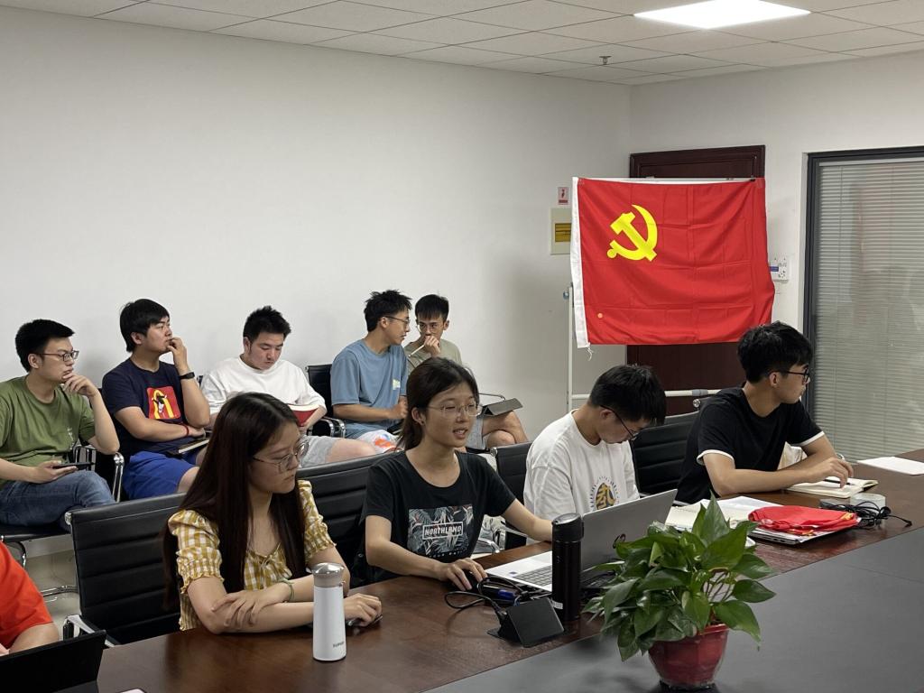随后,李秋彤同志带领大家学习了党旗领导下华中科技大学强磁场科学中心克难攻坚的事迹。她援引6月27日新华社对国家脉冲强磁场科学中心的报道《华中科技大学:党员是科研攻关“领头雁”》,介绍了强磁场中心初创之际一穷二白、筚路蓝缕的艰辛建设背景,并讲述了团队成员们在中心党支部的坚强领导下克服复杂工作环境、突破国外技术封锁的事迹。经由建设者克难攻坚的故事,同志们深刻认识到短短十年来强磁场中心的建设成就离不开党,党建工作在加强思想引领、推进凝心聚力、强化人才吸引等方面起着不可或缺的重要作用,要让党建与科研同频共振,让创新与传承并驾齐驱,一同建设更美好的华中大。