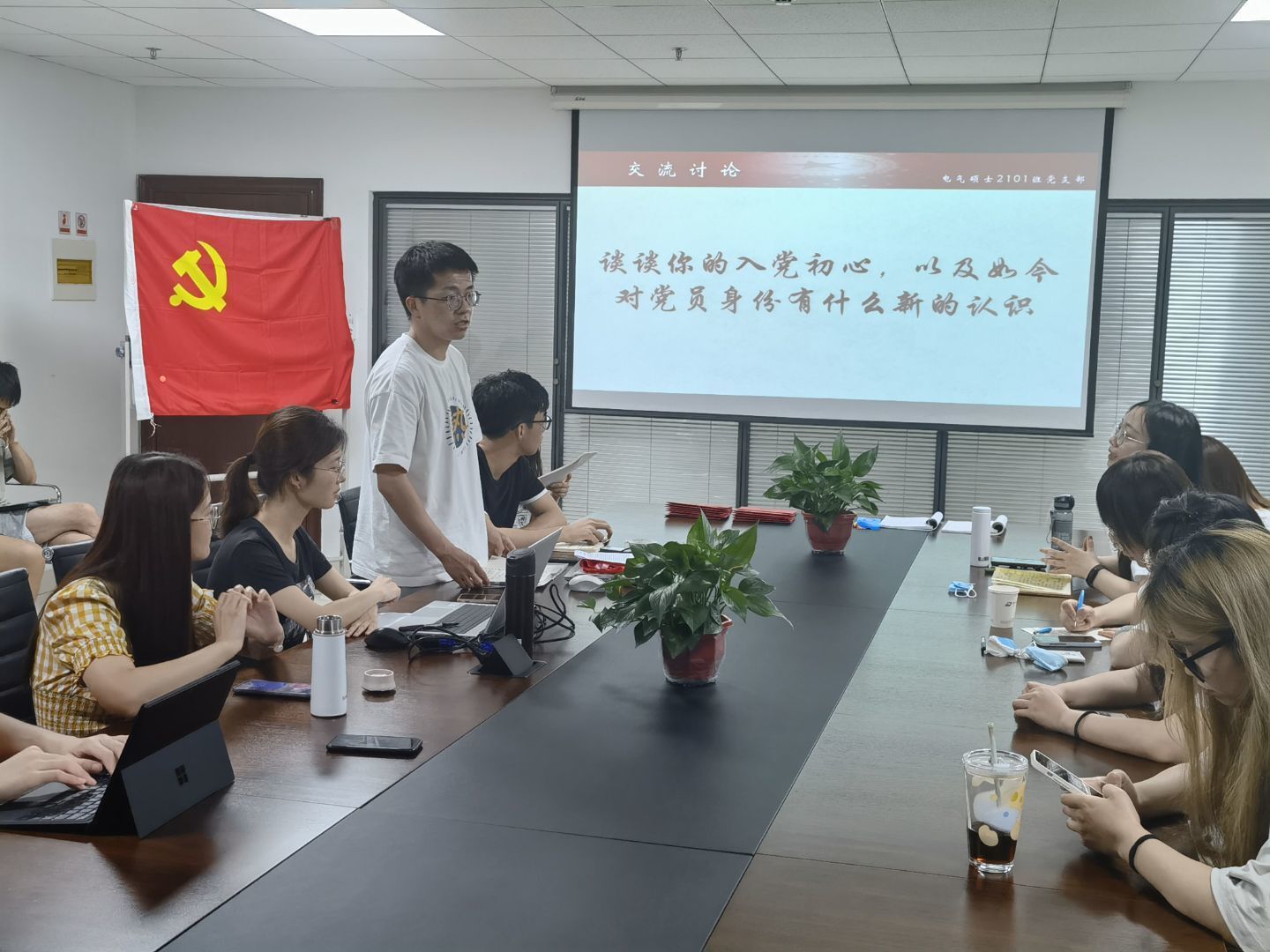 刘滢君同志说,在她所参与的交流小组中,有参与过天安门大阅兵方阵的志愿者同学,有投身于学生工作并且逐渐找到自我价值的朋友…大家的故事中体现处的入党初心是具体的、纯粹的。或许入党时我们对党组织的认识还较为简单,但是随着阅历的丰富我们对党员身份的感知也在渐渐增长。