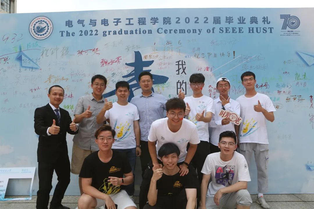 在同学们的热烈邀请下,华中科技大学校长尤政、樊明武院士和程时杰院士深情寄语毕业生,共同合照。各班更是与老师们积极合影留念,在镜头前留下专属青春誓言。