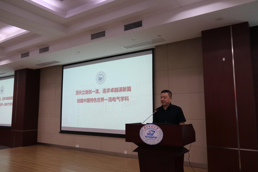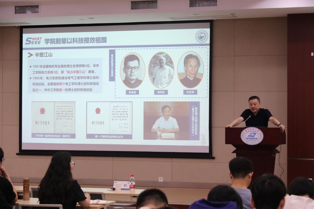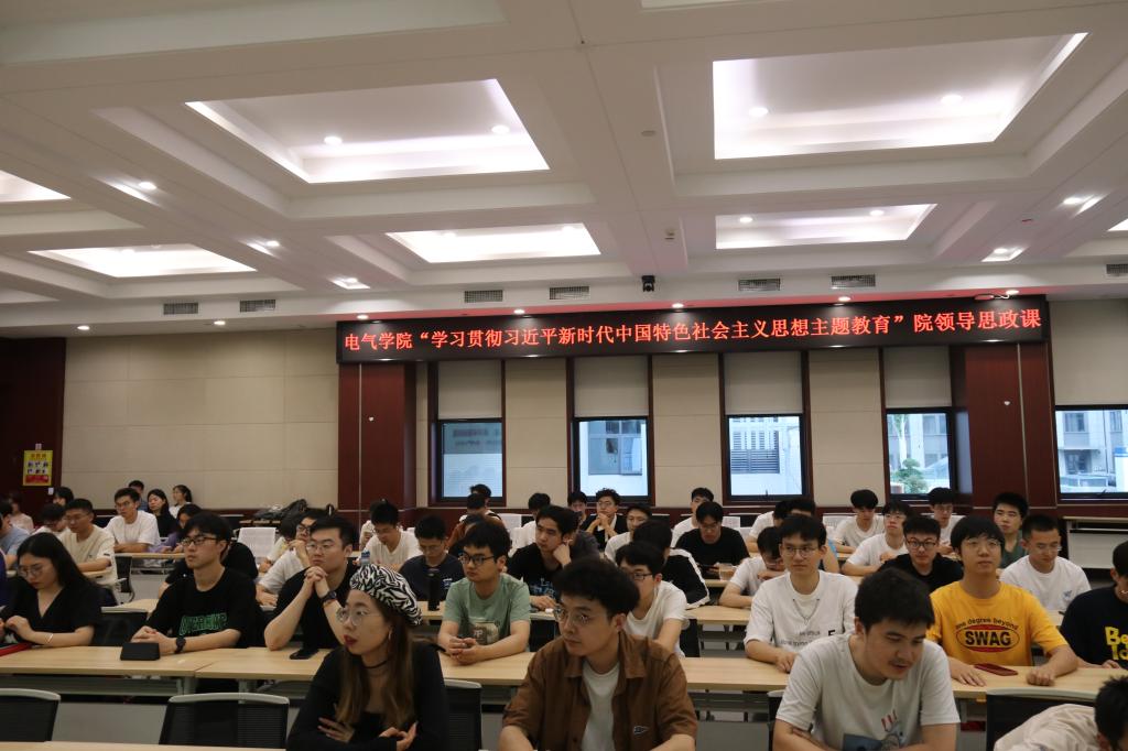 为学习贯彻习近平新时代中国特色社会主义思想主题教育,6月13日,电气与电子工程学院杨凯副院长以“顶天立地创一流,追求卓越谋新篇,创建中国特色世界一流电气学科”为主题,在电气大楼B201会议室为电机系、电工电磁所、聚变所22级的研究生讲了一堂生动的思政课,引导电气学子勇挑大梁、担当重任,为国家的繁荣昌盛贡献自己的力量。
