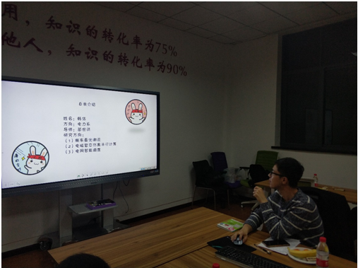 之后是邹剑桥以“科研那些事”为主题进行了分享。他首先对自己进行了简单的自我介绍。出于对电机控制的热爱,在保研时有很大选择余地的邹剑桥果断选择了在当时并不算热门的电机方向。在导师的严格要求和课题组人力匮乏的情况下,他在大四时就开始了自己的科研生活,并在大四时独立调通了一套永磁同步电机平台、写了两篇EI论文,他的本科毕业论文也被评为了湖北省优秀学士学位论文。在科研工作的分享方面,邹剑桥主要分为学术研究和企业项目两个方面进行。“学术研究方面就是要求结合课题组已有的基金发表相关文章,只要达到了发文章的要求,任务就算完成。”他说道。他也为大家总结了发表文章的要点。首先是需要看大量文献,尤其是外文文献,看完后,把自己当成审稿人去评判文献的好坏并做整理总结;之后要去熟悉自己研究的领域有哪些人、哪些机构在做自己研究领域方面的研究,并时刻跟进“大牛”的研究进展;最后他也指出切忌一稿多投,急于求成。此外,有关学术诚信方面,他也指出绝对不能造假或抄袭,一旦被查重,就会被期刊标识,以后就很难再向投稿的期刊投递文章。接着是企业项目方面。他指出,做实际项目的目的性一般很强,结合企业需求,做的事情会更加实际一些。他认为,多做几个完整的实际项目,很锻炼自己的能力,对于将来想去企业发展的同学会很有优势。在项目进行的过程中,很多本科时学习的知识就足以解决问题,遇到问题时所需要的就是把问题描述清楚,一旦知道问题在哪就很容易解决问题。但他也提示道,做企业项目往往很难出成果,在评奖评优时会很吃亏。科研之外,邹剑桥也提到了加强体育锻炼的重要性。“如果不想变胖,发际线变高,甚至脱发,每周锻炼一次。”他调侃道。分享的最后,他总结道,“研究生生活可以多姿多彩,也可以单调乏味,这全取决于你对自己的安排。机会很多,要好好把握!”