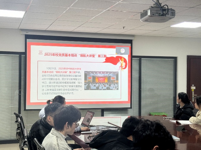 支部大讨论以“学生党员在教育强国建设中的使命担当”为主题展开。讨论前,支部传达了华中科技大学党员基本培训“领航大讲堂”第三期学习内容,包括教育部党组书记、部长怀进鹏关于教育强国建设的专题报告,以及校党委书记刘波相关讲话精神。党员们结合自身学习科研实际交流发言,纷纷表示要将个人成长融入教育强国、科技强国建设大局。