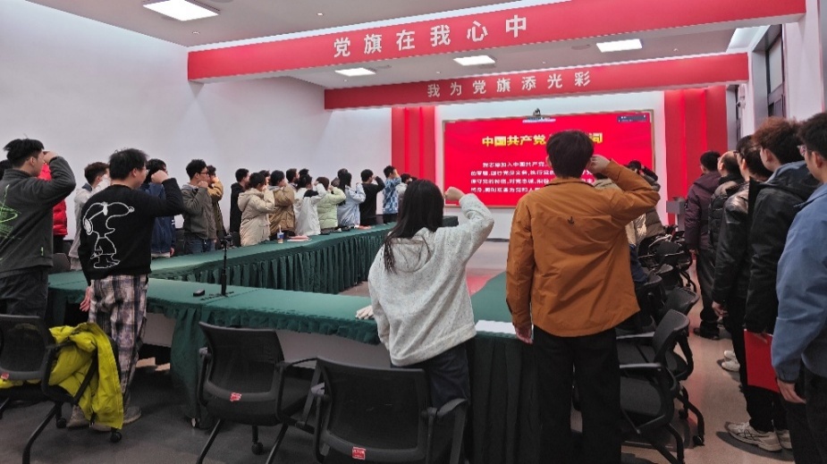 活动伊始,第一党支部书记张鹤腾带领全体党员庄严肃立,重温入党誓词,进一步坚定理想信念,激发青年党员科研报国、勇担使命的政治热情与青春活力。