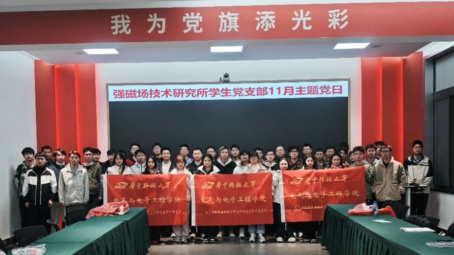 2025年11月18日下午,电气学院强磁场技术研究所研究生第三党支部联合第一、第二党支部在党旗领航教育基地举办“追随党旗领航,勇担时代使命”主题党日活动。活动响应学校党委“新时代党旗领航工程”部署,由第三党支部书记郭成章主持,三个支部全体党员参与。
