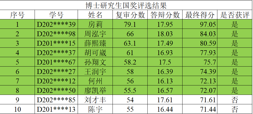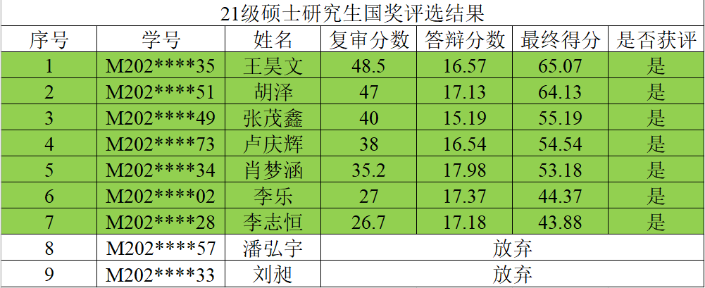 电气学院2023年研究生国家奖学金评选结果公示