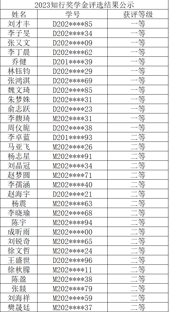 电气学院2023年研究生知行优秀奖学金评选结果公示